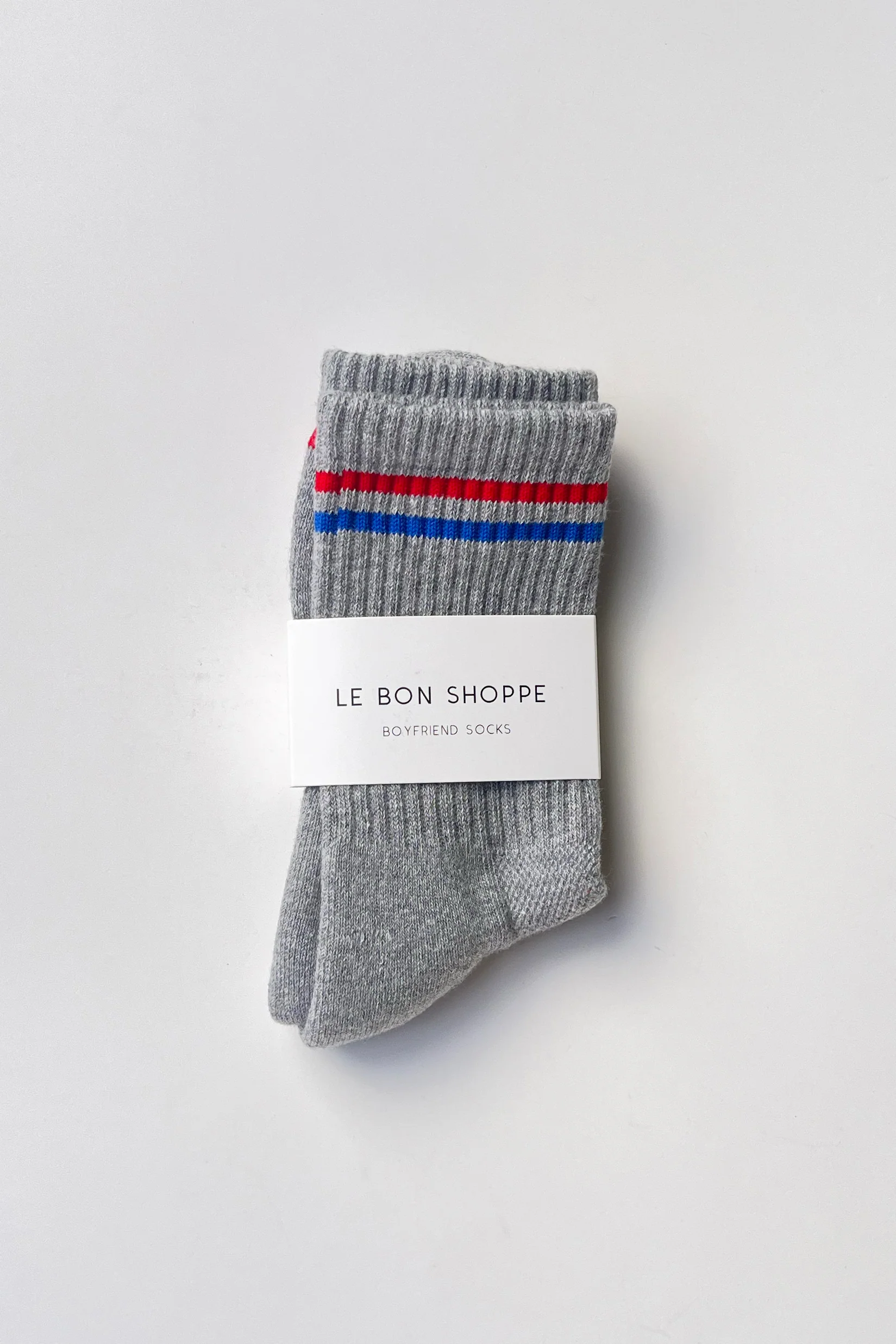 A signature style and year-round bestseller - the Boyfriend Socks capture a sporty vintage charm made for everyday wear. This slightly longer-than-crew sock features a contrast double stripe, mesh along the top of the foot for breathability, and elastic arch support. Durable, comfortable, and perfect for pairing with any shoe.