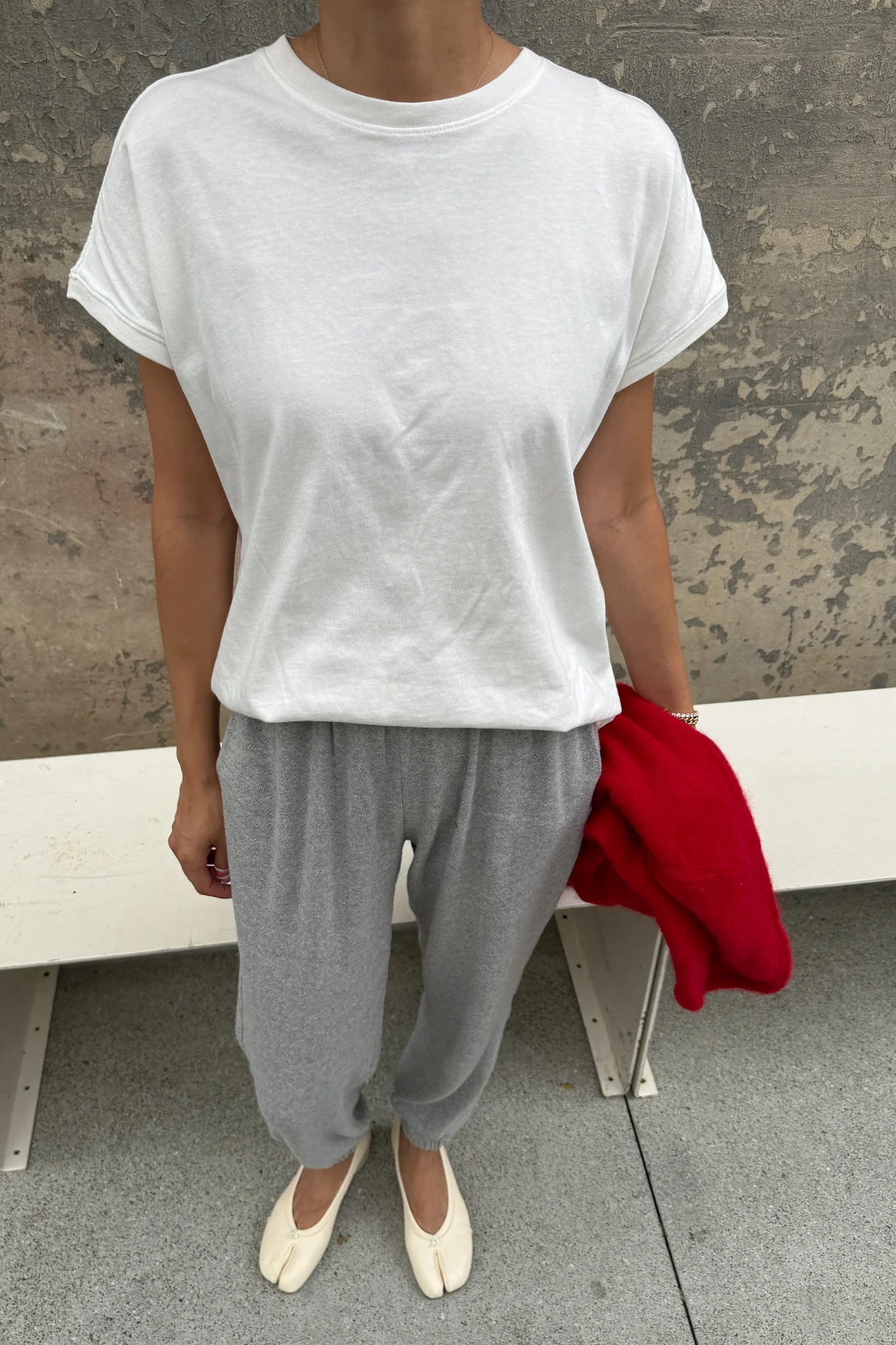 Ease Tee is an edgy dolman tee. She features a high crew neck, shoulder coverage without a sleeve, slightly rounded hem and a contrast rib banded sleeve opening and neck opening. With a crisp color palette and enough length to tuck in or out she is a cool girl's uniform.