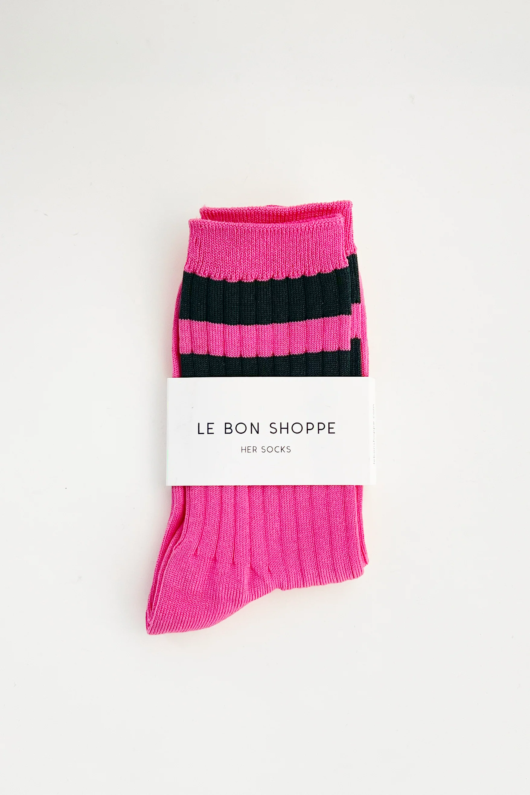 A sporty striped take on our original Her Socks. Her Varsity Socks feature a classic ribbed design and the perfect quarter-crew length. Made from a breathable cotton blend, these socks add a cool flair to any look with their bold stripe contrast.