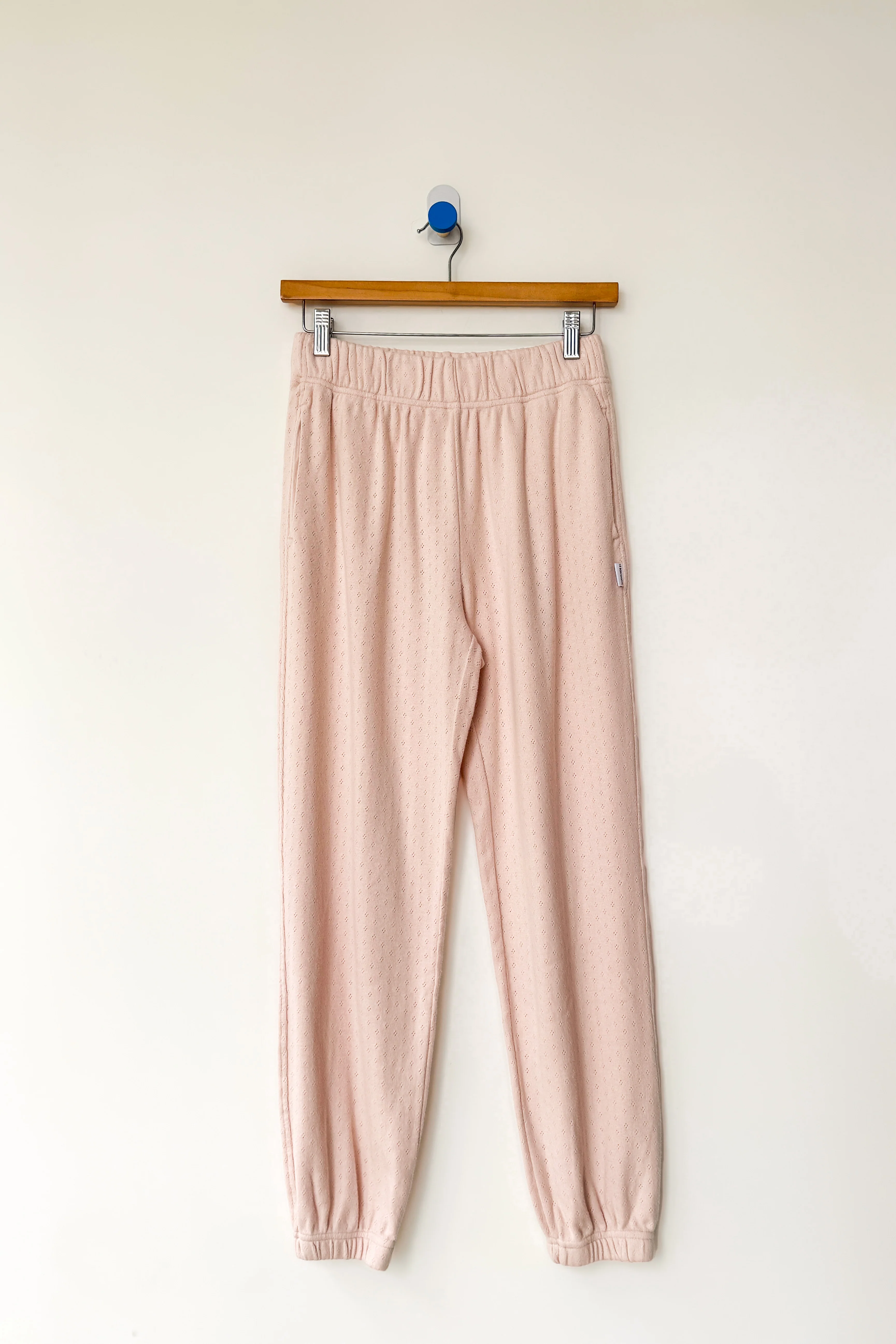 A refined evolution of our beloved Balloon Pants. The Pointelle Serene Joggers offer the same cozy ease with a more streamlined silhouette. With a slim leg and effortless drape, they bring a polished feel to your everyday sweatpants.