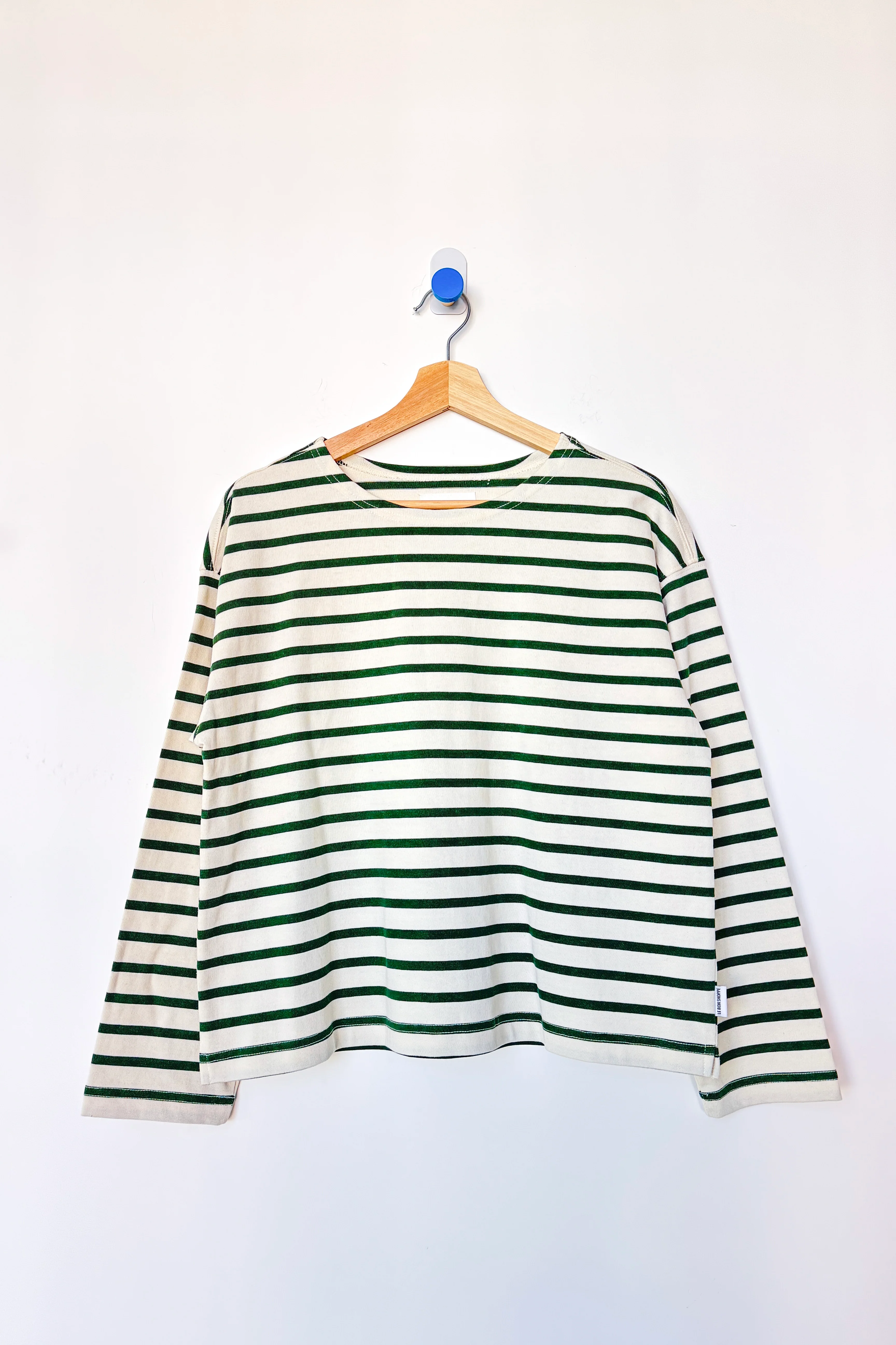 A nautical long sleeve with a classic fit. The Sailor Top takes design cues from the Marseille Top, featuring a Breton stripe and boxy shape, but updated with a flattering round neckline and a slightly cropped length that pairs effortlessly with high-waisted bottoms.